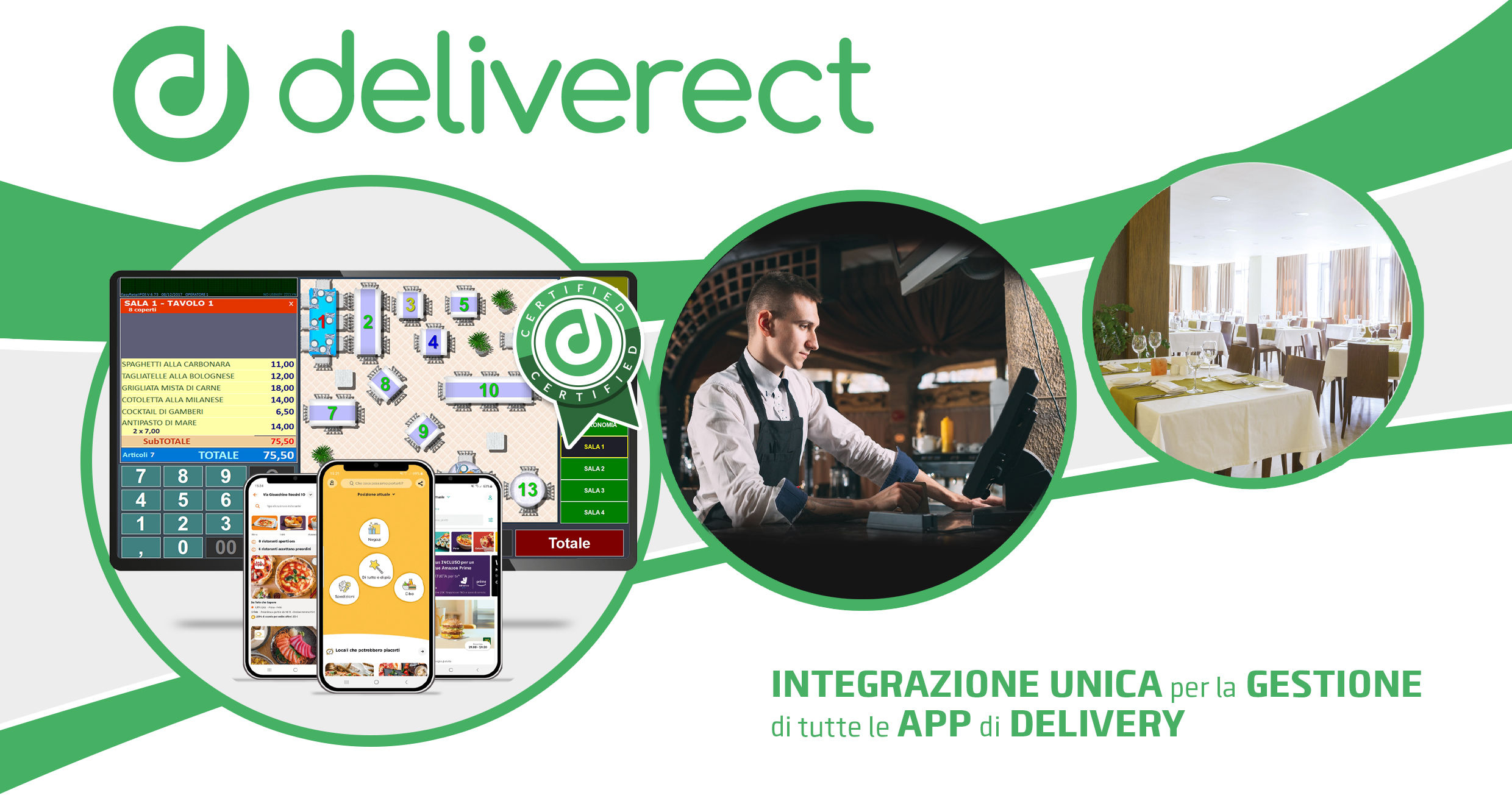 Modulo aggiuntivo di ristorazione per l'integrazione app di delivery (Glovo, Deliveroo, Just Eat, Uber Eats, etc.) compatibili con il sistema Deliverect (App delivery e Deliverect da attivare separatamente).