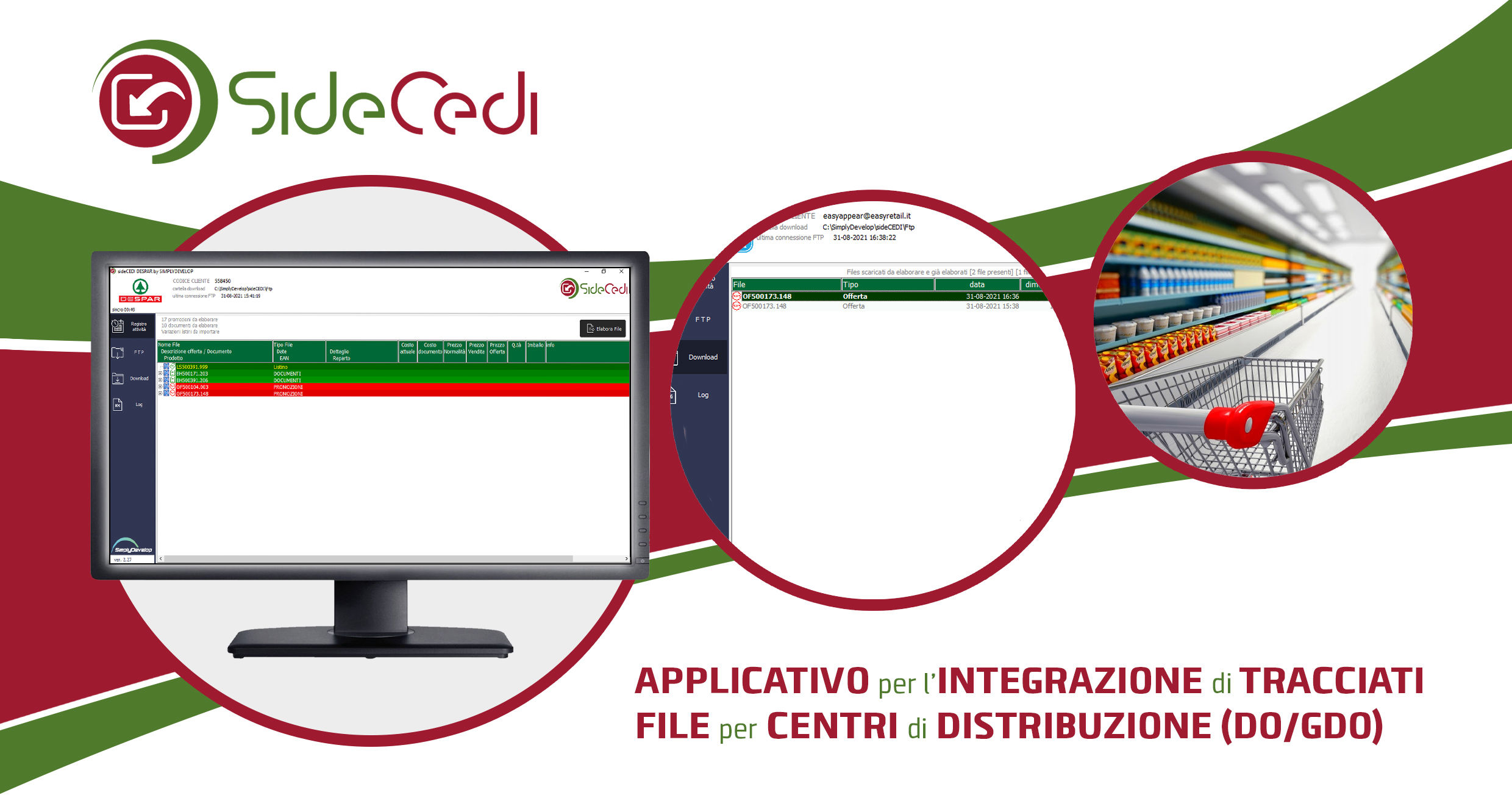 SiDeCedi è l'applicativo per l'integrazione di tracciati file per centri di distribuzione (DO/GDO). In un unico applicativo sono presenti i connettori per i più famosi brand della grande distribuzione, con la possibilità di implementarne sempre di più.